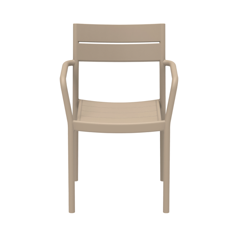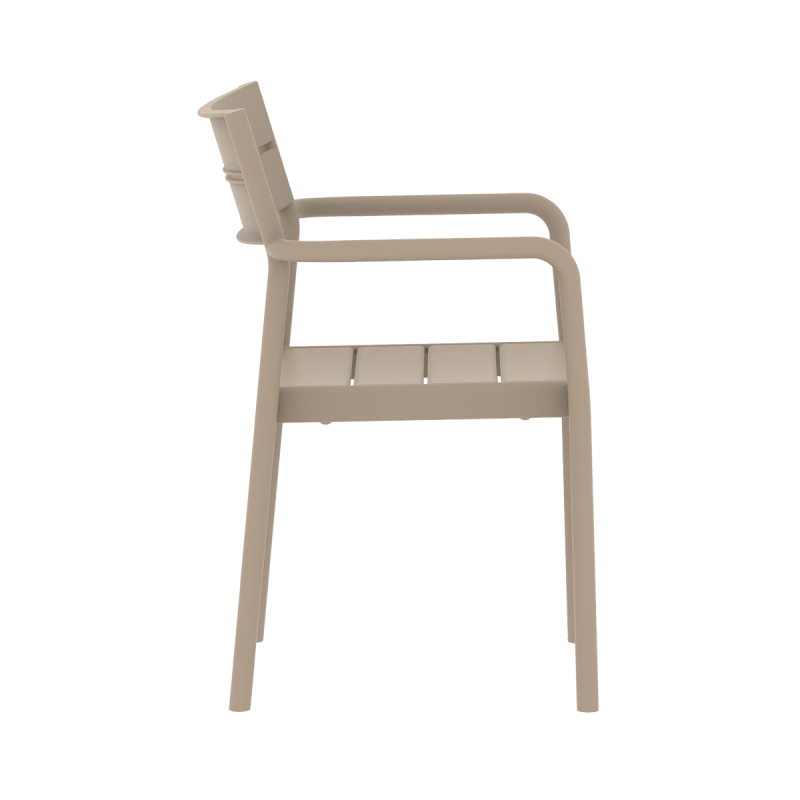 CAPRI ARM est une chaise outdoor conçue pour les espaces de restauration modernes. La ligne caractéristique du dossier avec ouverture horizontale ainsi que les accoudoirs profilés lui confèrent une apparence structurée et affirmée. Sa construction présente une grande légèreté visuelle tout en assurant un confort optimal à l’utilisateur. Cette chaise plastique est idéale pour les terrasses de restaurant, les bars et les bistrots, ainsi qu’en tant que chaise de piscine dans les hôtels.