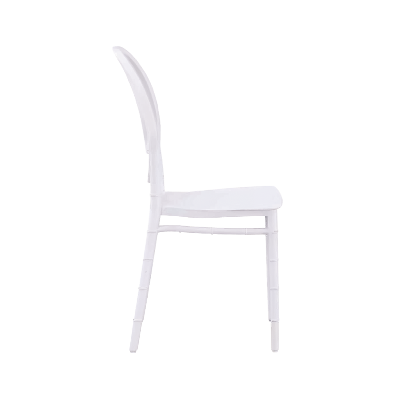 Le modèle Phoenix Simple est fabriqué en polypropylène résistant, ce qui lui confère à la fois beauté et fonctionnalité. Sa surface est facile à nettoyer, ce qui en fait une option idéale aussi bien pour les cérémonies en plein air que pour les réceptions de mariage en intérieur. Sa construction solide et son assise ergonomique garantissent un confort optimal, même durant de longues célébrations.