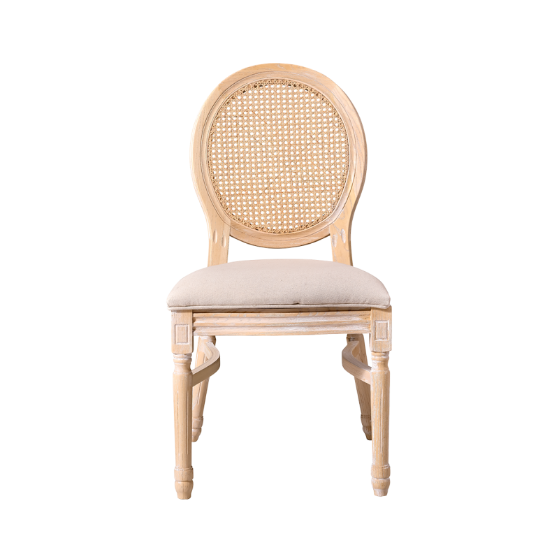 La chaise Médallion incarne l’essence même du style et de l’élégance – un choix idéal pour les restaurants, les salles de réception et les mariages, où chaque détail compte. Son design intemporel et ses matériaux naturels créent un ensemble harmonieux qui confère aux intérieurs un caractère unique.