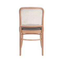 Le dossier en rotin naturel apporte finesse et souligne les racines classiques du modèle. C’est une solution éprouvée depuis des années dans les espaces de restauration.