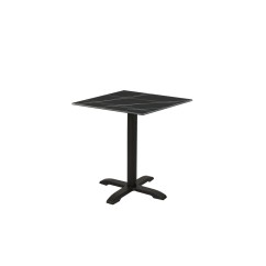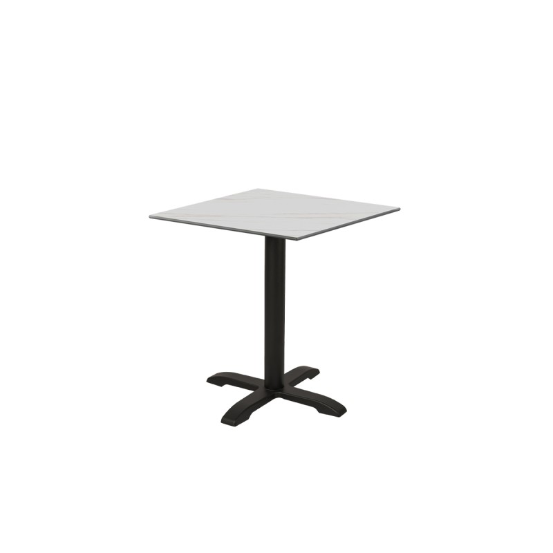 La base carrée de 48x48 cm et la colonne robuste de 7,6 cm de diamètre offrent un support ferme pour les plateaux de table de différentes tailles. C'est un choix idéal pour les tables de restaurant standard, offrant un confort d'utilisation tant pour les clients que pour le personnel. Fabriquée en fonte durable, la table Carvo résiste à une utilisation quotidienne, ce qui la rend parfaite pour une utilisation intérieure et extérieure.