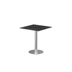 Sigma R est le modèle frère de la table de bistrot Sigma – les deux forment une paire de solutions bien pensées pour les bistrots qui attendent une conception cohérente et une fiabilité structurelle. La base en acier inoxydable de la table Sigma R se distingue de son homologue principalement par ses lignes arrondies – à la fois dans la colonne et dans la base.