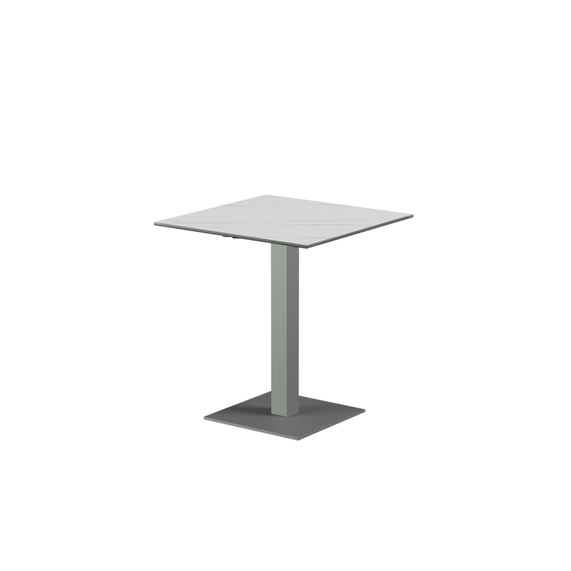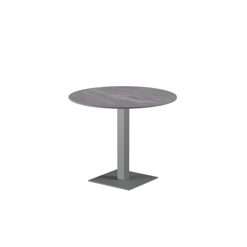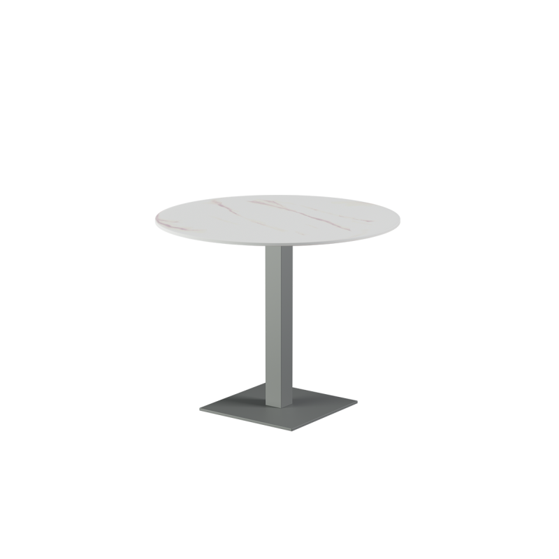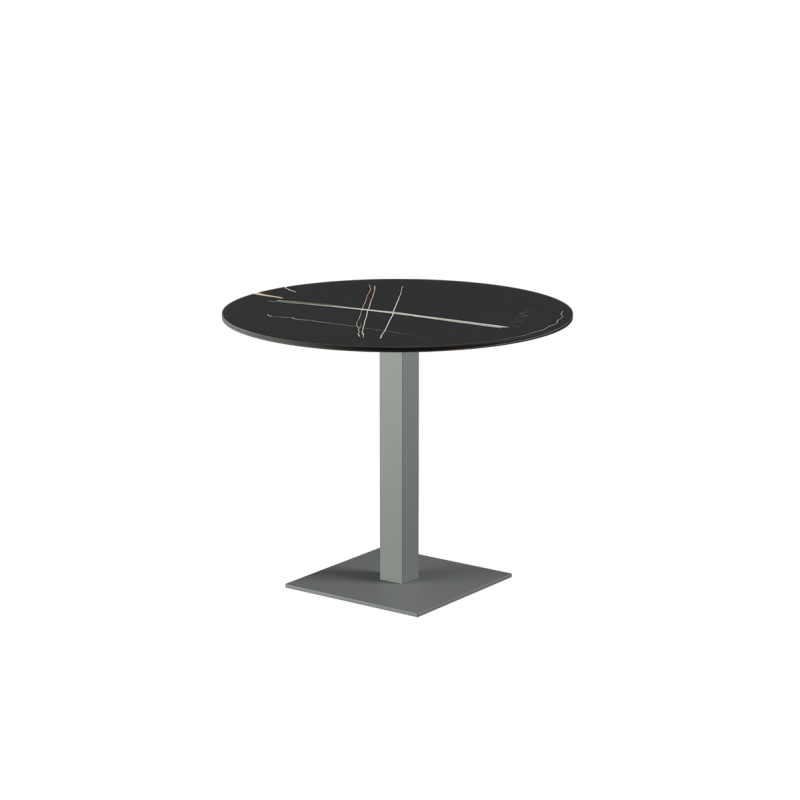 Socles disponibles : 45×45 cm, 40×55 cm, double socle ALFA DUO 40×70 cm, socle rond Ø 45 cm, ainsi que des piètements de bar hauteur 108 cm en 45×45 cm et 40×70 cm.