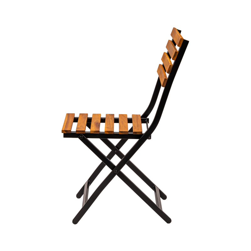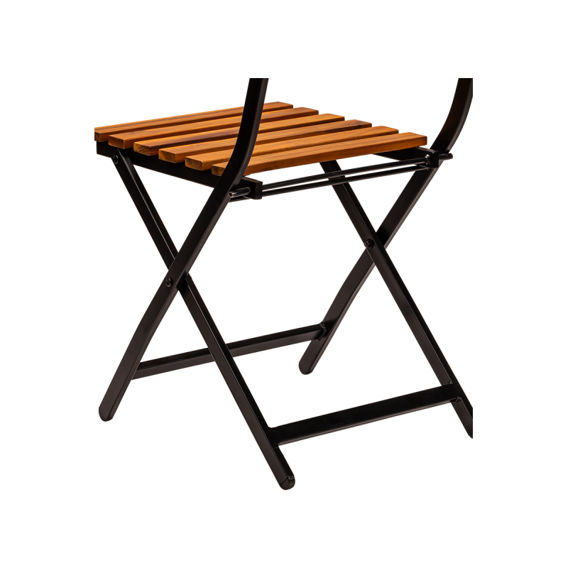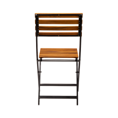 Le cadre en acier peint par poudrage garantit stabilité et résistance à une utilisation intensive ainsi qu’aux intempéries. L’assise et le dossier en lattes de bois confèrent à l’ensemble un caractère naturel et assurent un confort optimal. La fonction pliante facilite le stockage, le transport et la préparation rapide de l’espace pour accueillir les clients.